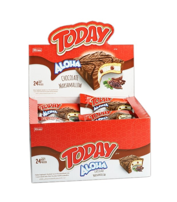 Bir kutu içerisinde 24 adet kendinden paketli Aloha çikolatalı marshmallowlu kek ürünü yer almaktadır. Bir adet ürün 35 gramdır.