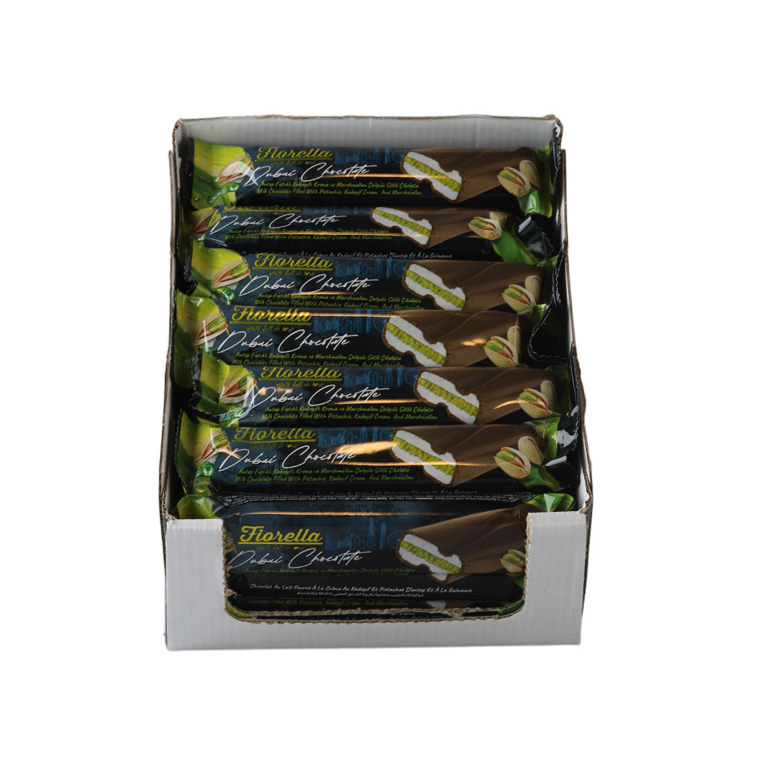 Fiorella Dubai Antep Fıstıklı Kadayıflı Krema ve Marshmallow Dolgulu Sütlü Çikolata 32 Gram 24 Adet (1 Kutu)