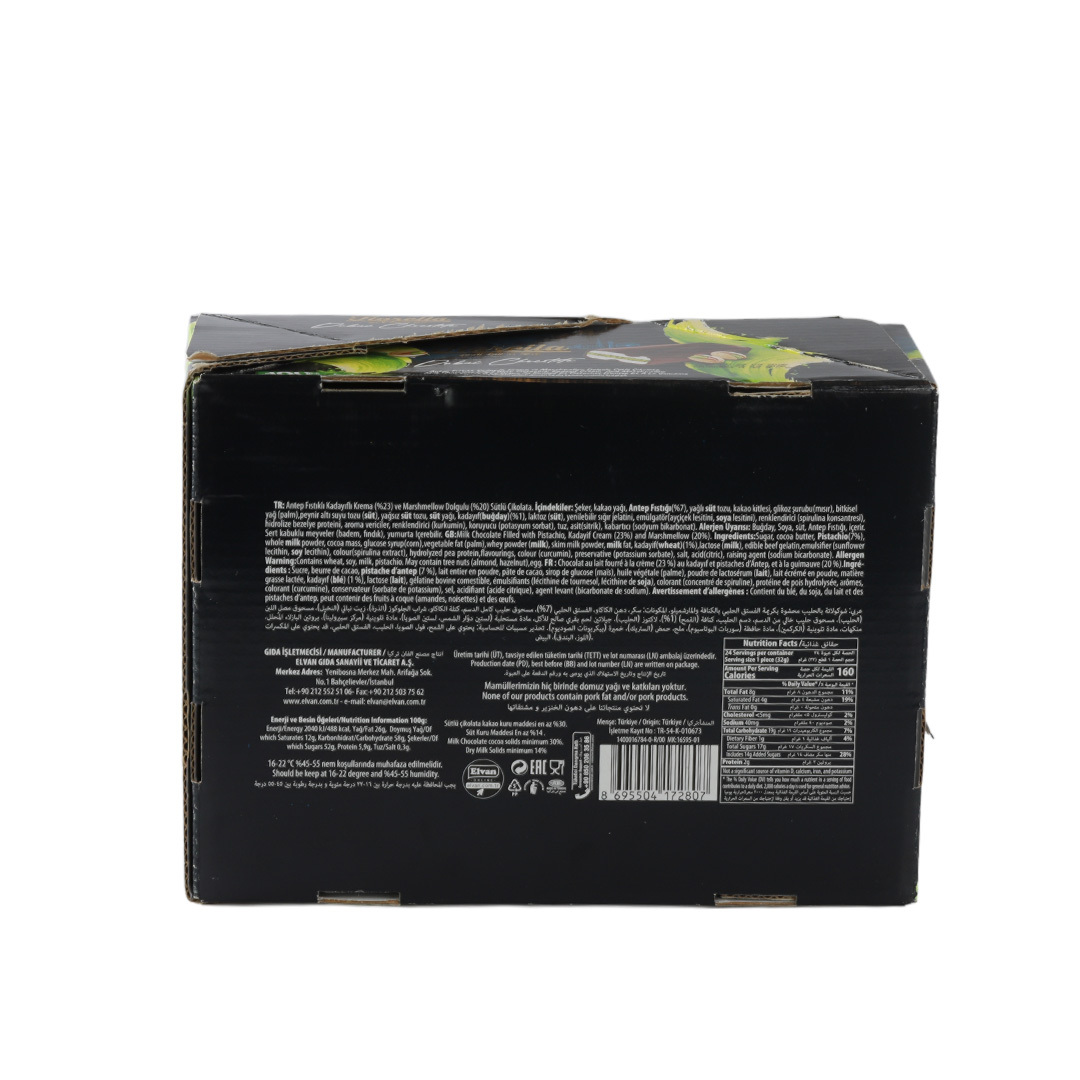 Yoğun sütlü çikolata, taptaze Antep fıstığı ve çıtır kadayıfın benzersiz uyumu, marshmallow ve krema dolgusu ile yumuşak bir denge kazanır. Pratik porsiyonlarıyla kahve molalarında veya sevdiklerinize hediye etmek için ideal bir tercihtir.