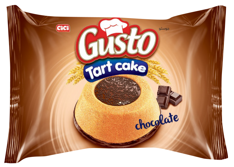 It is a chocolate-filled cake product of the Gusto brand. The product can also be described as a tart cake. There is a chocolate sponge filling on the top of the cake.