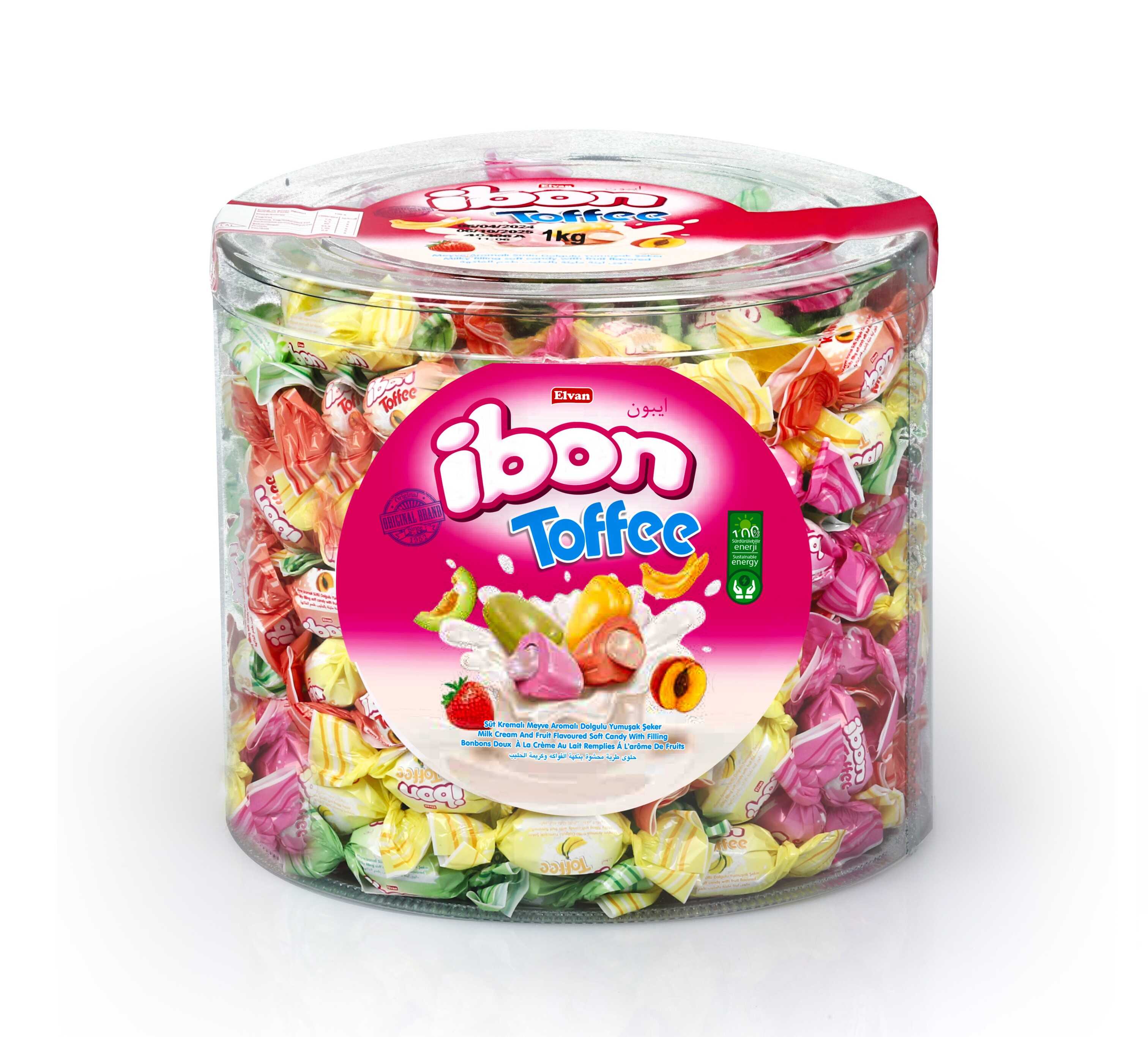 Ibon Toffee Milky Fruit Candy 1000 Gram Cylinder (1 Box)