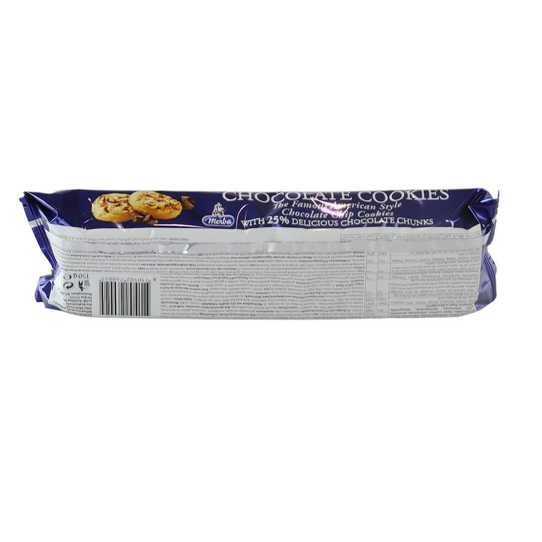 One pack of Merba Chocolate Cookies product is 150 grams. There are 8 cookies in a package.